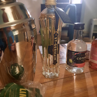 Miniature bottles, a mini cocktail shaker, garnishes, and honey! All I needed to provide was the ice, raspberries, fresh lemon, and an egg (although S and I decided to give that addition a miss). CGC also provided handy little recipe cards and a link to watch back if we want to make again - which we most certainly will!